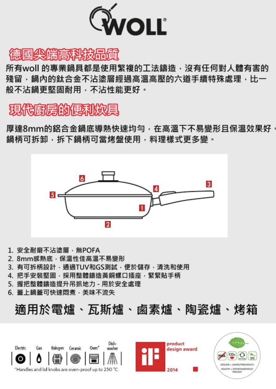 #woll #德國 炸鍋;可拆卸手柄 直徑:32公分 高:5公分 12.5“Ø,2”高 可搭配安全玻璃蓋:S32